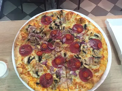 - Pyszna pizza na cienkim cieście z dużą ilością świeżych składników